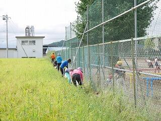 同時に、校庭東側フェンス沿いに雑草が伸びてしまっていたので、教職員で除草作業をしました。あまりにも多くて、全部はできませんでしたが、来週また作業したいと思います。