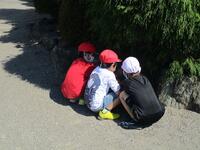 先日と同じように審判係の練習中は、トラックの外側で遊んでいてくれました。終わった途端に、トラックの中になだれ込んできました。