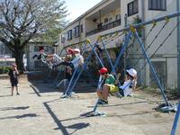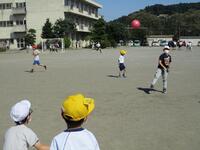 明日に備えて、先生方がサッカーゴールを移動しました。大勢の1年生が6年生を取り巻くように、その動きを見つめていました。子どもたちは、伸び伸びと遊んでいました。みんな元気でなによりです。