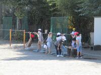審判係が練習している間、他の子どもたちはトラックの外で遊んでいました。「邪魔をしない」「どちらが優先か」などの判断がきちんとできている証であると思います。