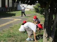 きょうだい学級で行いました。15分程度の短い時間でしたが、6年生を中心に、落ち葉を集めたり、草をむしったり、子どもたちは一生懸命に取り組んでくれました。