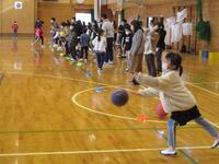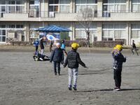 2年生と3年生と5年生が入り混じってドッジボールをしていました。5年生は、相手によって投げる強度を変えていました。流石でした。下級生は上級生に挑んでいました。まさに「全力で」投球していました。