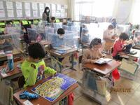 子どもたちは無事に登校できました。8時5分からの朝の会では、みんな一生懸命に取り組んでいました。