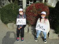 欠席している子どもたちは何人かいましたが、予定通り、全校生で写真を撮り、全校生で楽しい時間を過ごしました。代表委員が何度も話合いをもち、150人ずつの「ふやしおに」をすることになりました。最初の「おに」は身長が150cmの人(6年生が3人ずつ)がなりました。時間は150秒。150にちなんだルールで遊びをつくってくれました。