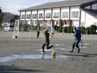 校庭にはまだ水たまりがありました。子どもたちは、水たまりをよけながら巧みに遊んでいました。