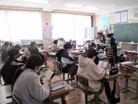 業間にZoomで行いました。校長室の様子を教室に配信しました。映像も音声もきちんと届きました。教室の子どもたちも緊張感をもって臨んでくれました。