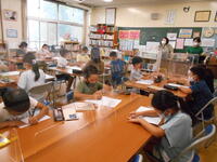 「自分の休みについて、相手に分かりやすく伝えよう」というめあてでした。子どもたちは、自分がこれまでの(出掛けることができた)夏休みなどにしたことについて、英語で一生懸命に発表していました。聞き手側は、発表者に配慮しながら真剣に聞くことができていました。