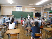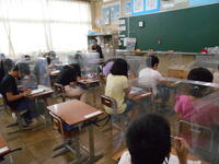 9月1日(水)業間の時間は、雨が降っていたので教室で過ごすようにしました。業間直前には、放送で「友達との距離をきちんと保って過ごすように」と確認しました。教室での子どもたちは、ソーシャルディスタンスを保って、感染症対策を行いながら過ごすことができていました。