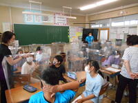 8月31日(火)の委員会の時間は、通常通りの活動は行いませんでした。今日は、「新しい取組についてのアイデアを出し合おう」というようなコンセプトで取り組みました。自分の飛沫防止ガードをそれぞれの活動場所に持参し、前を向いたままでの話合い活動を中心に行いました。委員長(児童)を中心に、児童同士で、学級会で培った力を発揮して、話合い活動を行いました。「自分たちの力で学校をよくしていこう」そんな気持ちが大きくなる時間になってくれたら、この上なく嬉しいです。