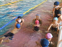 5年生も6年生もコース別の授業でした。水泳の講師3名をお招きして、より充実した指導が行われました。今日の授業が、クロールや平泳ぎを覚える「きっかけ」になってくれることを期待しています。