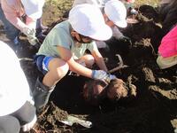 1時間目に1年生がさつまいもを収穫しました。「なかなか取れない~っ」「つながってる~っ」「でっか~い」「ふか~い」「これはいもなのか~っ?」などなど、さつまいもを掘りながら、思ったことを口にしていた子どもたち。そこに、子どもたちにとっては新たな発見や大きな発見があったのだと思います。さつまいもの実の付き方について思わず学習してしまいました。