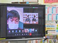 業間にZoomで行いました。校長室の様子を教室に配信しました。映像も音声もきちんと届きました。教室の子どもたちも緊張感をもって臨んでくれました。