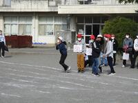 1年生が試走をしていました。走るコースとチェックの仕方の確認をしていました。走るコースを間違えてしまったり、「だれだか分かんねえ~っ(みんな同じ体育着だからという意味です。多分)」という声が聞こえてきたりしました。練習してよかったですね。