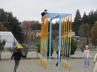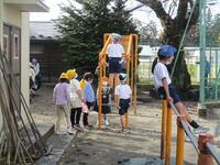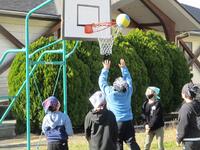 いただいたバスケットゴールの固定が完了し、使用割当も決まりました。今日は4年生が使い初めでした。楽しそうにシュートしながら遊んでいました。「入んねえ~っ」「むずかしい~っ」とか言いながら。