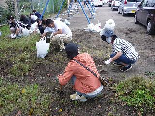 このところの暑さのため草はかなり伸びていました。手際よく作業を進めていたいただきましたが、予定時刻を大きく過ぎてしまいました。おかげさまで伸びきっていた草もきれいになりました。トイレや側溝もきれいになりました。ありがとうございました。