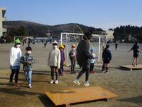 2年2組が「多様な動きをつくる運動遊び」で行いました。めあては「(なわとびの)跳び方のポイントを見付けよう」でした。大なわとびでポイント探しをしてから、個人跳びで記録に挑戦しました。