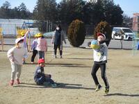 気温がとても低くてチラチラしてはいましたが、おひさまが少し顔を出していたし、地面も白くなかったので、外で遊んでもらいました。楽しそうな表情がたくさん見られました。