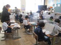 朝の活動では、1・2年生が算数のステップアップに取り組んでいました。3年生は「ラッキーセブン」を行っていました。