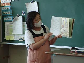 火曜日に読み聞かせを行えなかったクラスの読み聞かせがありました。いつものことながら子どもたちは真剣に本に見入っていました。朝から暑い一日になってしまいました。校庭での活動を控えることもあるかと思いますが、図書室の使用や読書活動が盛んに行われそうです。