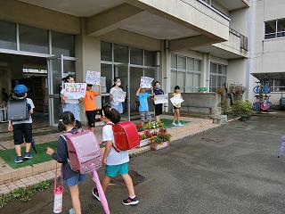 例年よりも早い2学期の始業式を迎えました。今回も放送室を使って教室で話を聞く形の始業式でした。今回も代表児童3名はしっかりと発表できました。発表後には安心した表情が見られました。校長先生からは2学期に向けて「『あいさつをしっかりする』『2学期の目標を決めてしっかり取り組む』ことの2つを達成できるようにしよう」と話がありました。教室を回ると、子どもたちからは元気そうなあいさつの声が返ってきました。さっそくあいさつについて取り組めていました。