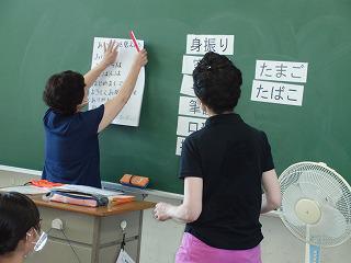 一方、実際に手話を使っている方を講師にした手話教室も行われました。簡単な日常会話を手話を使って行ったり、日頃日常生活の中で困っていることをお聞きしたりして子どもたちは手話に興味をもったようです。最後に手話クイズも行いました。1組と2組で入れ替えで行いました。また、今回手話を行う際に口の動きが分かるようにシールドマスクを用意しました。子どもたちにはいつものマスクよりも使いやすいと好評でした。