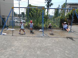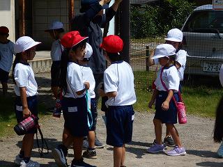2学期が始まりましたが、天気予報によると今週は連日暑い日が続くようです。新型コロナ感染症への対策に加え、熱中症への対策も必要になります。ミストシャワーを取り付けようとホームセンターを探したのですが、手に入らず思案していましたが、仁神堂幼稚園の園長先生や理事長さんが「今週中なら園もお休み期間中なので貸し出せる」とおっしゃってくださり、快く貸してくださいました。早速、昇降口に取り付けました。校庭から校舎内に戻るときにミストシャワーが心地よいようで子どもたちには好評でした。外に出るときは帽子をかぶることもできていました。水分補給や具合が悪いと感じたらすぐにひかげや校舎の中に入ることなどを徹底したいと思います。今週中にはミストシャワーを購入したいと思います。