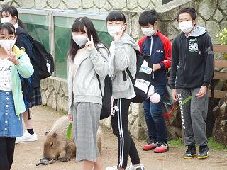10月15日(木)、1日目はとちぎ動物王国に行きました。東京ディズニーランドの数倍あるという広い敷地にたくさんの動物がいました。すぐ目の前でカンガルーがボクシングをして闘っていました。砂猫はたくさんの人が写真を撮っていました。ホワイトオオカミの前にも人だかりができていました。バードショーは頭のすぐ上を大きな鳥が飛び交いすごい迫力でした。中でも子どもたちが一番興味を示したのはお土産でした。手にしたクーポンを握りしめ何を買おうか迷っていました。