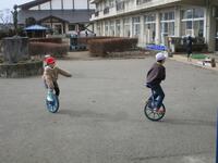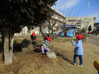 気温がとても低くてチラチラしてはいましたが、おひさまが少し顔を出していたし、地面も白くなかったので、外で遊んでもらいました。楽しそうな表情がたくさん見られました。
