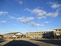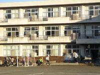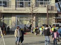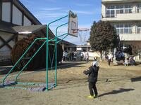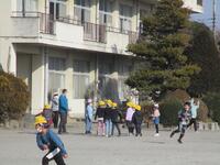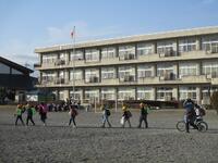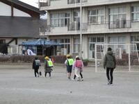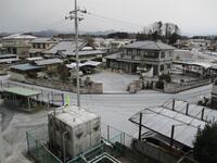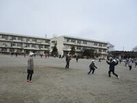 校庭はうっすらと雪化粧をしていました。子どもたちは無事に登校できました。