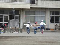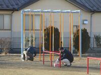 寒い寒い朝でした。車も道路も校庭も真っ白に凍っていました。子どもたちは無事に登校できました。