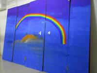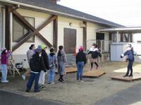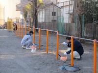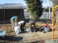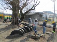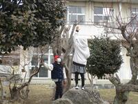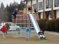 たくさんの保護者の皆様にお集まりいただきました。なわとびジャンプ台の作製、樹木の剪定、ペンキ塗り、特別教室窓枠の清掃などを行っていただきました。約2時間でしたが、学校のあちらこちらが美しく生まれ変わりました。
