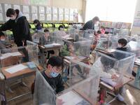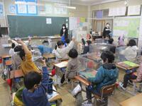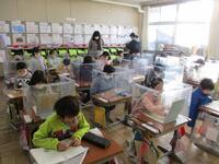 子どもたちは無事に登校できました。8時5分からの朝の会では、みんな一生懸命に取り組んでいました。