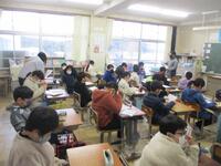 今朝は、チラチラと白い粒が舞っていましたが、子どもたちはみんな無事に登校できました。朝の活動では、本の世界に浸りました。落ち着いた雰囲気で1週間のスタートを切ることができました。