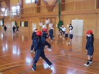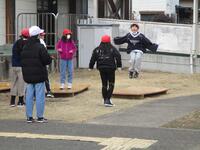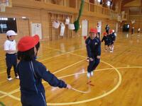 2年2組が「多様な動きをつくる運動遊び」で行いました。めあては「(なわとびの)跳び方のポイントを見付けよう」でした。大なわとびでポイント探しをしてから、個人跳びで記録に挑戦しました。