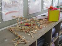 2年生教室のロッカーの上には、出番を待つ「お宝」がたくさん並んでいました。
