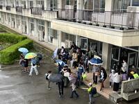 校内放送の指示に従い、全員が机の下に潜り非難しました。