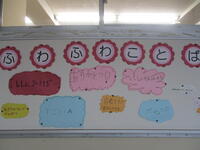12月8日(水)人権週間の水曜日です。教室や廊下で見付けたものを紹介します。2年2組の黒板には「くん、さん、ちゃんづけで人の名前を呼ぼう」と子どもの字で書いてありました。3年2組の黒板には「今週のめあて」として「だれにでも、やさしい言葉を使おう。」とありました。人権週間にふさわしい「めあて」だと思いました。あおぞら教室廊下には「ふわふわことば」「ちくちくことば」の掲示物がありました。「ふわふわことば」の方がいいに決まっていますよね。そして、1年教室の廊下には吊るしのポスターが。「やさしい言葉を使ってますか?おもいやるンジャー」と書かれています。みんなで「おもいやるンジャー」になりましょう!