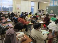 今朝は、チラチラと白い粒が舞っていましたが、子どもたちはみんな無事に登校できました。朝の活動では、本の世界に浸りました。落ち着いた雰囲気で1週間のスタートを切ることができました。