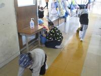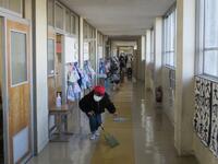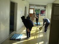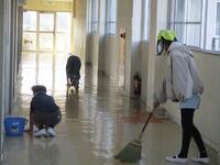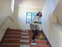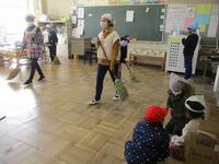 今日も1年生から6年生までが縦割り班で行う清掃がありました。