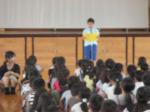 校長先生は、2学期のみんなへの願いをひとつ発表しました。それは、「ワンランクアップ」。特に「あいさつ」を頑張ろうということです。達人は、そこに「笑顔」が付くのだ、というお話もしました。あいさつについては、学校でも取り組んでいきます。ご家庭でもあいさつの励行についてお話しいただければと思います。