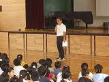 避難した後の集会では、校長先生からの講評がありました。「お・か・し・も・ち」と「い・か・の・お・す・し」という合言葉、皆さんは分かりますか?避難する時の注意と、不審者にあった時の対応の仕方を示しています。子どもたちは、両方よく知っていました。知ったうえで、行動できるのが理想です。繰り返しの訓練が大切だと思います。