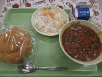 水曜日;バターロール、牛乳、ブラウンシチュー、フルーツヨーグルト