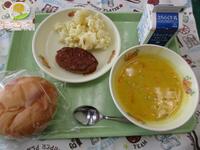 【木曜日】ご飯、牛乳、けいちゃん、かきたま汁、お米でプリンタルト