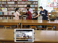 モニターの画面を見て、楽しみながら読んだり歌ったりしました。