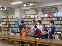 奈佐原文楽クラブが活動する日に、3名の保存会の方が来校して、指導をしてくださっています。今日は、代表の方の説明の後、実際に実演をして、様子をお伝えすることができました。