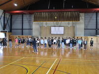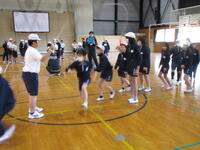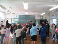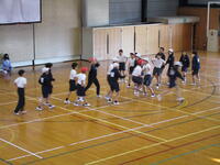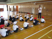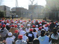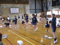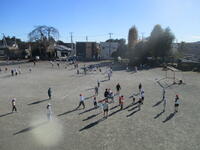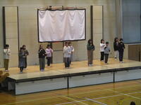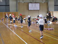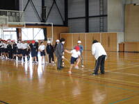 1、2年生は、前跳び(時間)と後ろ跳び(回数)、3〜6年生は、前跳び(時間)と二重跳び(回数)を実施し、その結果の上位の児童を表彰しました。表彰のあとに、クラス対抗の長縄跳びで、430回を跳んだ5年1組の児童たちが、見本の跳び方を見せてくれました。全校生が真剣に見ていました。