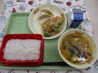 木曜日;大麦ご飯、牛乳、チキンカレー、ツナサラダ