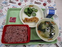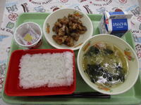 【火曜日】わかめご飯、牛乳、たこやき、ツナ和え、豚汁