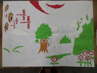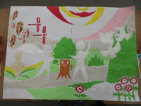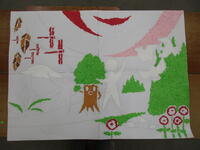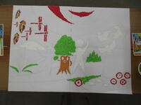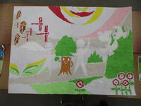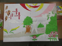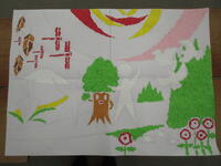 今日のちぎり絵制作は、制作当日お休みだった児童が担当でした。