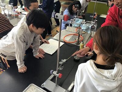 実験装置の準備も自分たちで行います。器具の持ち方や使い方も気をつけながら行いました。